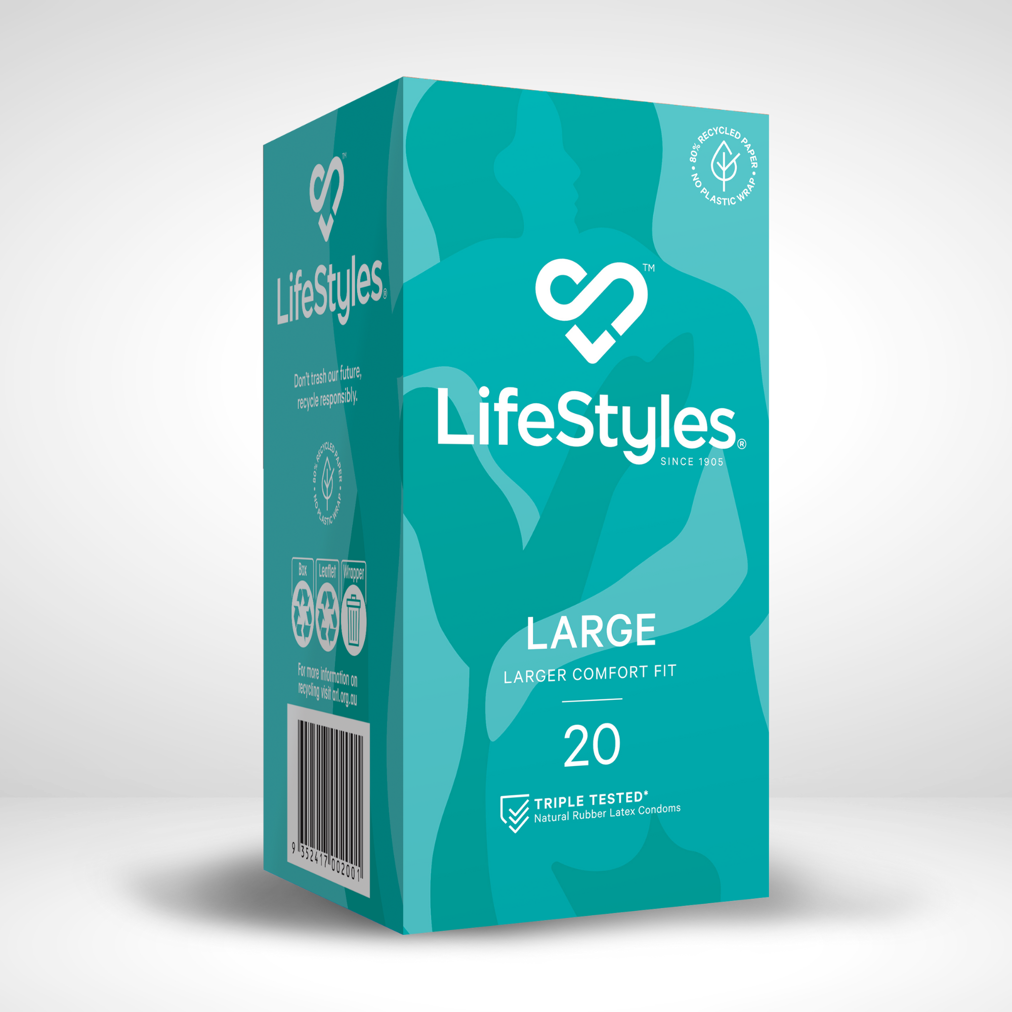 LifeStyles® condom boxes have no plastic wrap and are made from 80% recycled paper. Feel-good protection since 1905.