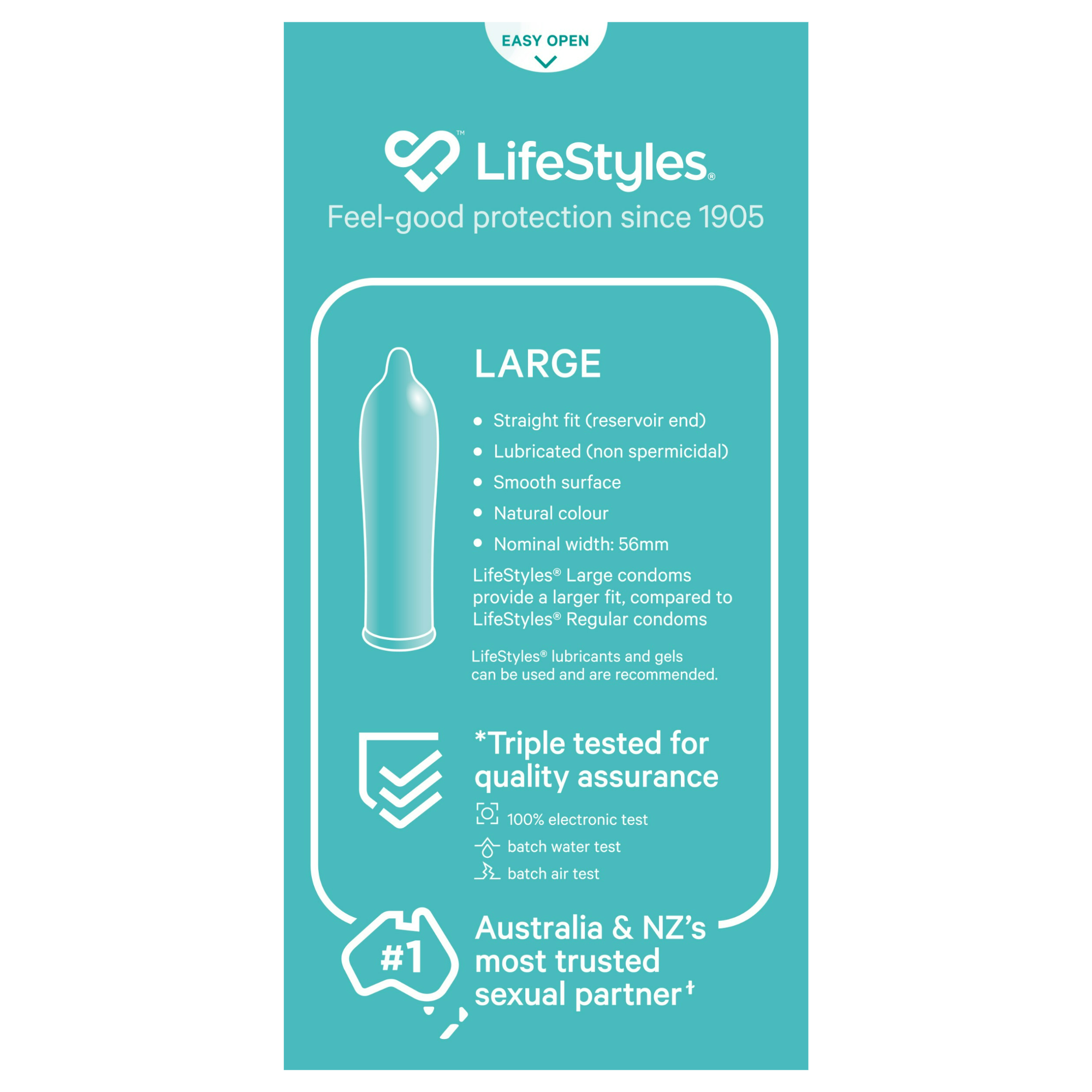 Natural Rubber Latex Condoms. Always read the label and follow the directions for use. LifeStyles® Large condoms provide a larger fit, compared to LifeStyles® Regular condoms.
