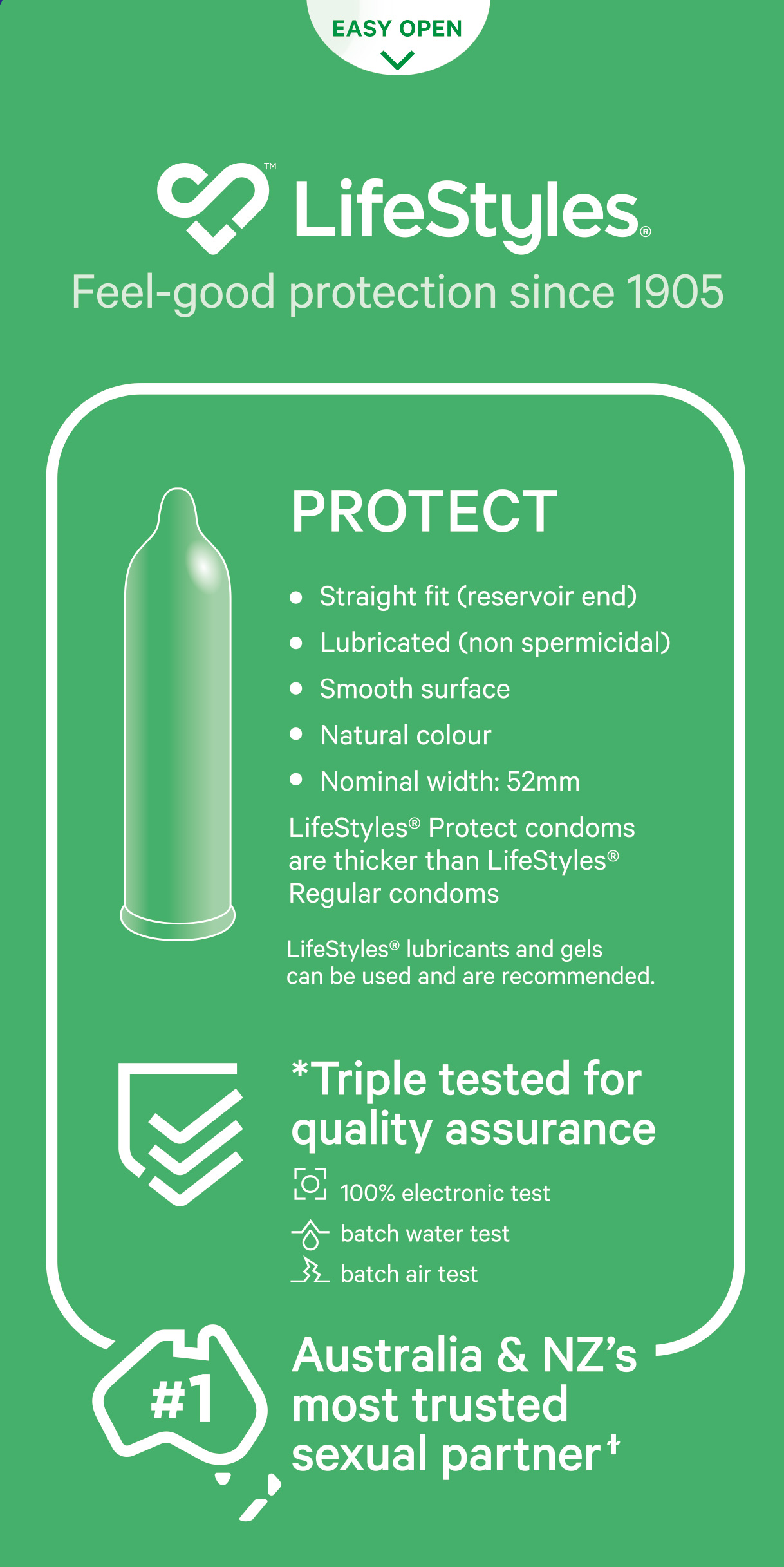 LifeStyles® condom boxes have no plastic wrap and are made from 80% recycled paper. Feel-good protection since 1905.