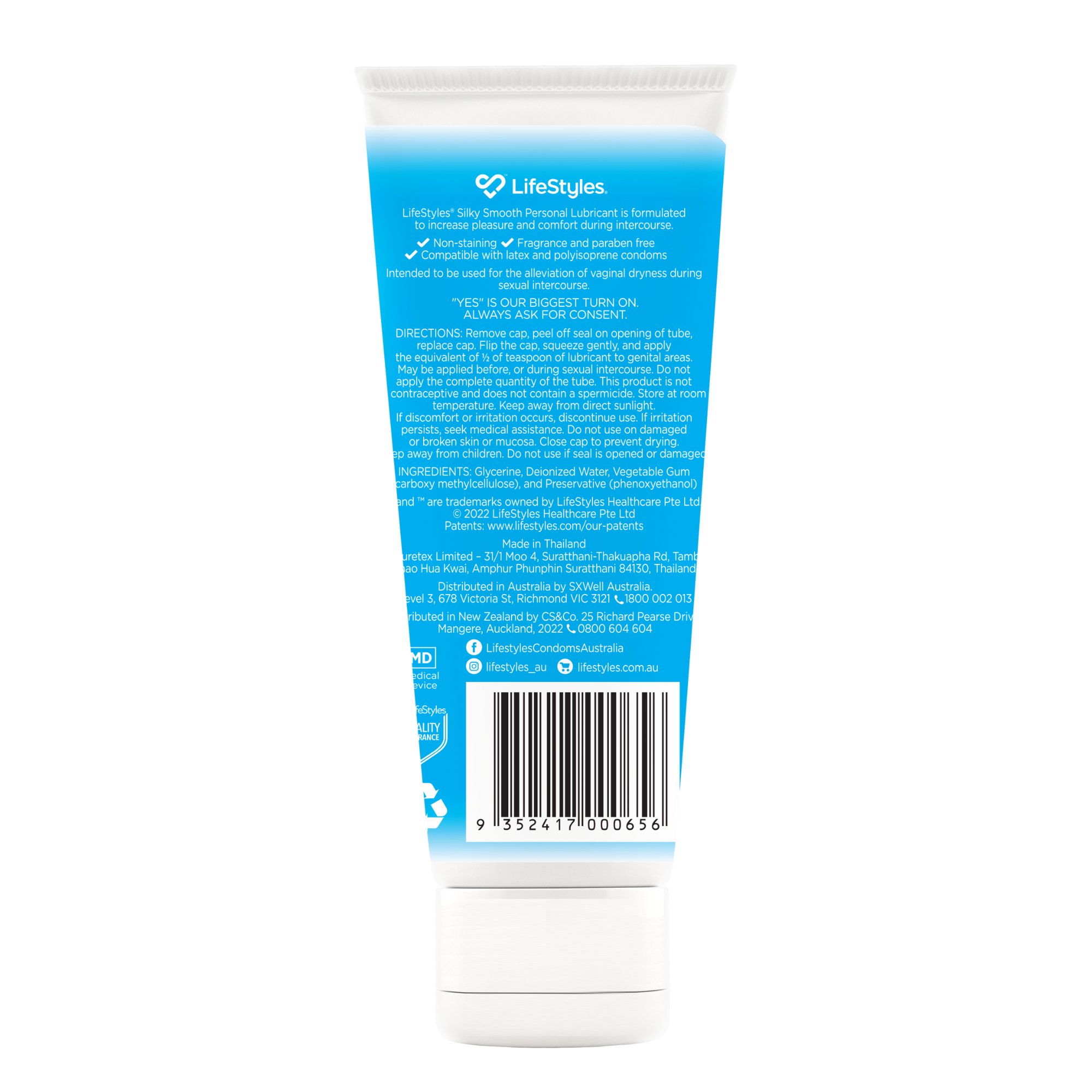 Our water-based formulation is non-staining, fragrance and paraben free and compatible with latex and polyisoprene condoms.